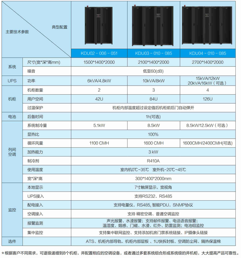 支持选用 N+1 或 2N 架构,保障供电安全,提供器件级、设备级、系统级可靠接地,保障设备操作可靠,前门采用钢化玻璃板,空调配备 EC 风机绿色节能