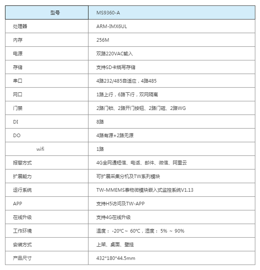 32路RJ45端口,提供强大的接口接入能力:6路拓展网口、8路复用232/485接口、8路DI输入接口、6路有/无源DO输;出接口、2路门禁系统接口、4路AD接口可直接接入漏水绳、