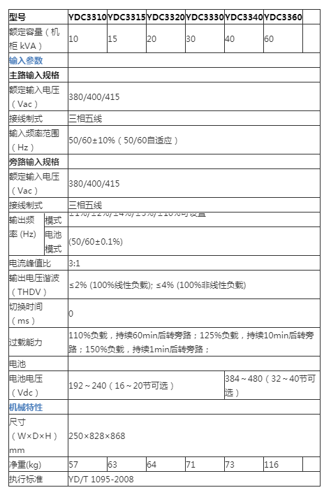 10~30KVA电池节数16~20节可选 40~80KVA电池节数32~40节可选 100~200KVA电池节数 30~50节可选