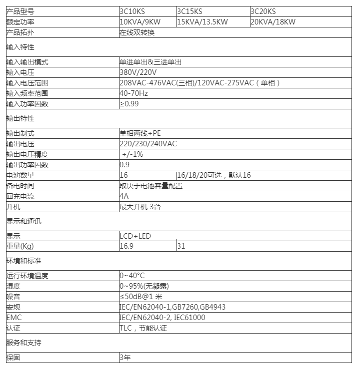 可靠性 逆变效率94%, ECO模式效率98%,在30%负载时,效率即可达到93.5%,节能高效
