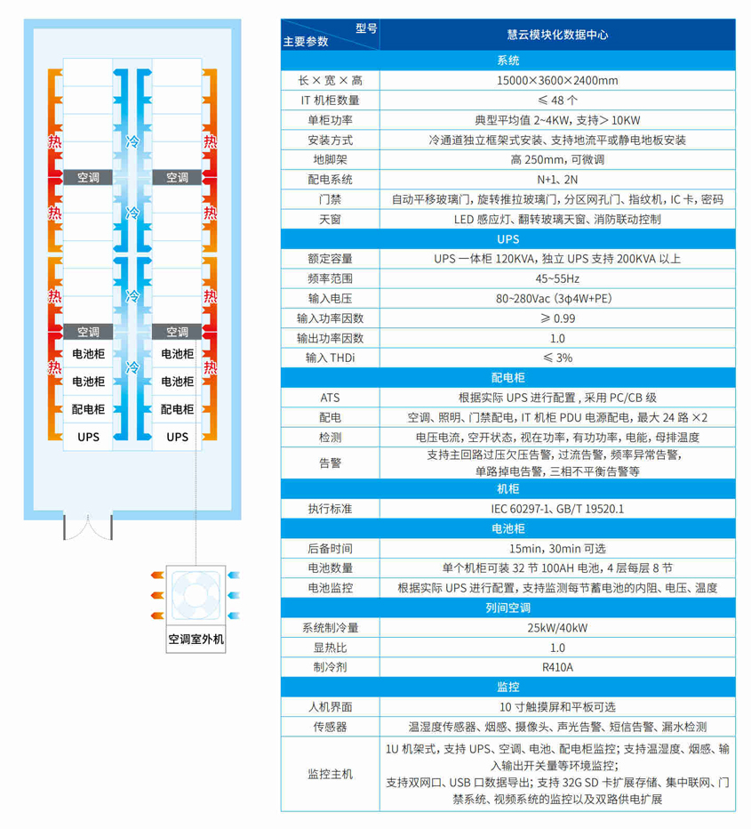 高能效设计、低初始投资、绿色方案结合,模块化设计,降低客户时间成本,高能效的系统设计,低PUE值,节省能耗达20~30%。